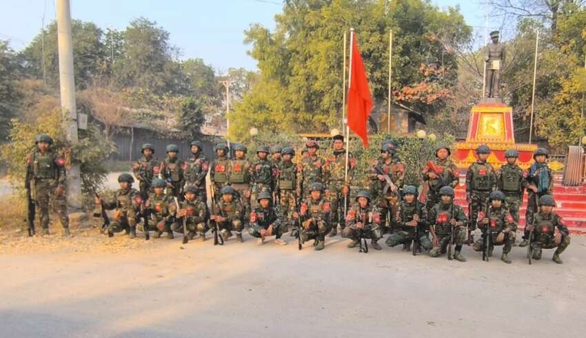 ဓာတ်ပုံ- Myaung Ogre Column (MOC) ဘီလူးစစ်ကြောင်းမှ တော်လှန်ရေးရဲဘော်များက မြောင်မြို့ပေါ်သို့ ရောက်ရှိခဲ့စဉ်။