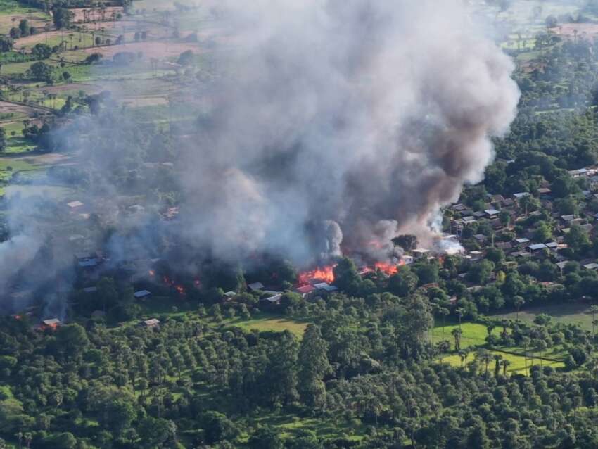 ဓာတ်ပုံ – စစ်ကိုင်းတိုင်းအတွင်းရှိ ကျေးရွာတစ်ခုကို အကြမ်းဖက် စစ်တပ်က မီးရှို့ဖျက်ဆီးနေစဉ် (ပုံအဟောင်းဖြစ်သည်)